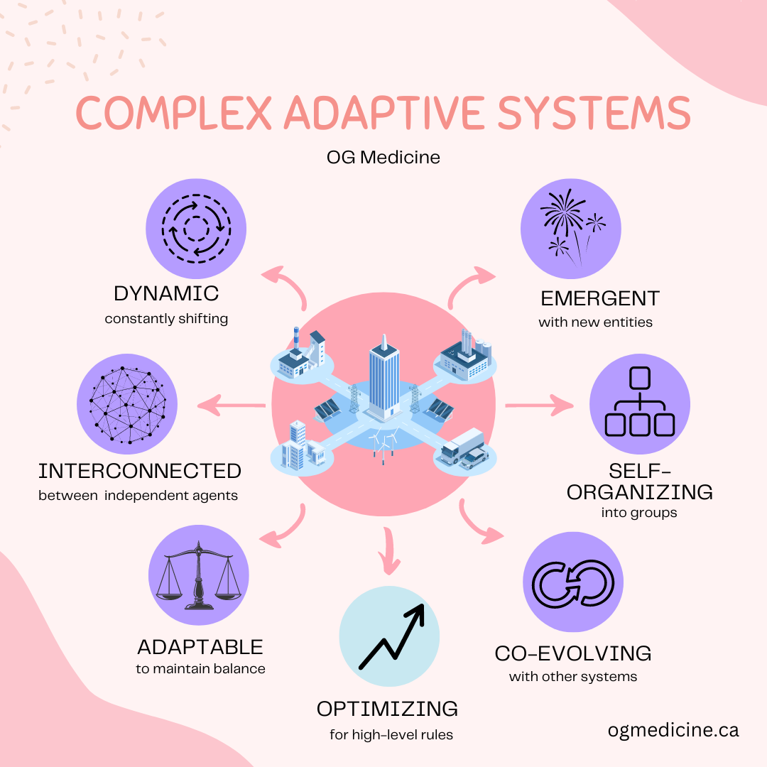 Importantly, complexity isn’t unique to healthcare. Evidence of CAS across systems and society is mounting, and spans many disciplines - it’s talked about in economics (the stock market is a CAS); ecology (any animal or insect with a “hive mind” tends to form a CAS, like bees and ants); mathematics (non-Euclidean geometry and fractals); computer programming (neural networks and the natural language-processing underlying ChatGPT are all CAS); and the list could go on.